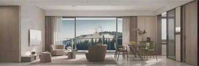 舒阔空间:户户向南、看山无遮挡宽阔户型 专梯入户/2梯3户舒适梯户比,宽阔横厅,延伸城山的边界,每扇窗户外都是山。3.6米超高层高,重新定义家的高度。