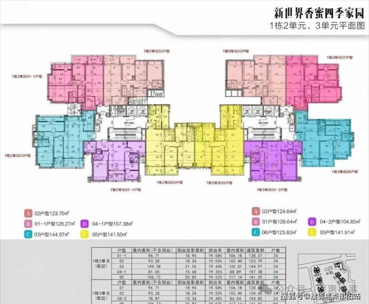 面积段为建面约105-120-144-190-222-280㎡3-6房,2栋1单元复式209-369㎡,2栋2单元243-491㎡