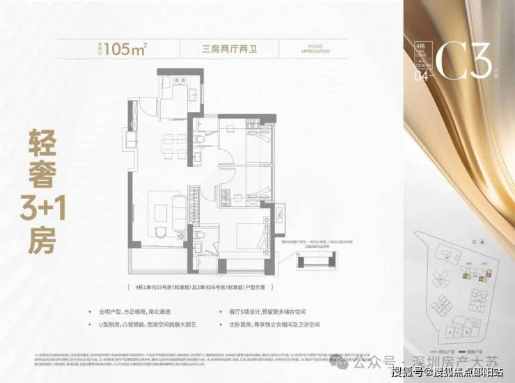105㎡(三房两卫)3+1MAX空间,轻奢进阶更舒适!