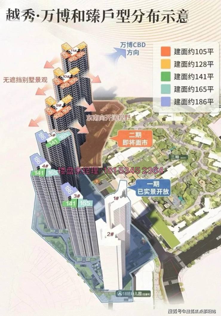 6、越秀万博和臻:加推二期最后一栋9号楼,105平总价44X万起、128平62X万起、141平68X万起、186平1000万起。