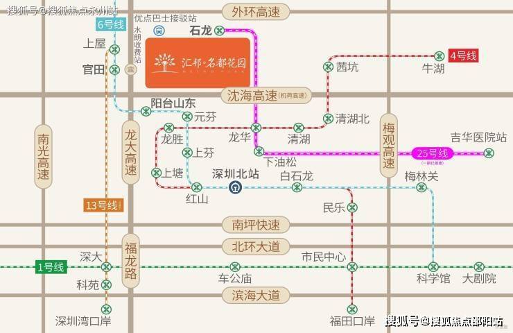 轨道交通方面,地铁6号线预计将于2020年5月全线通车,距离项目最近的站点是“官田站”,6号线一期是连接深圳北站和松岗的一条地铁线路,可与4号线换乘乘至福田中心区。另外地铁13号线(已规划)未来也将通过该片区。