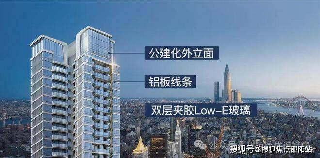 高颜值外立面,著立一座城的美学峯面『城市峯面』:双层夹胶low-e玻璃+铝板线条外立面,配置一体化系统窗,同频豪居审美。