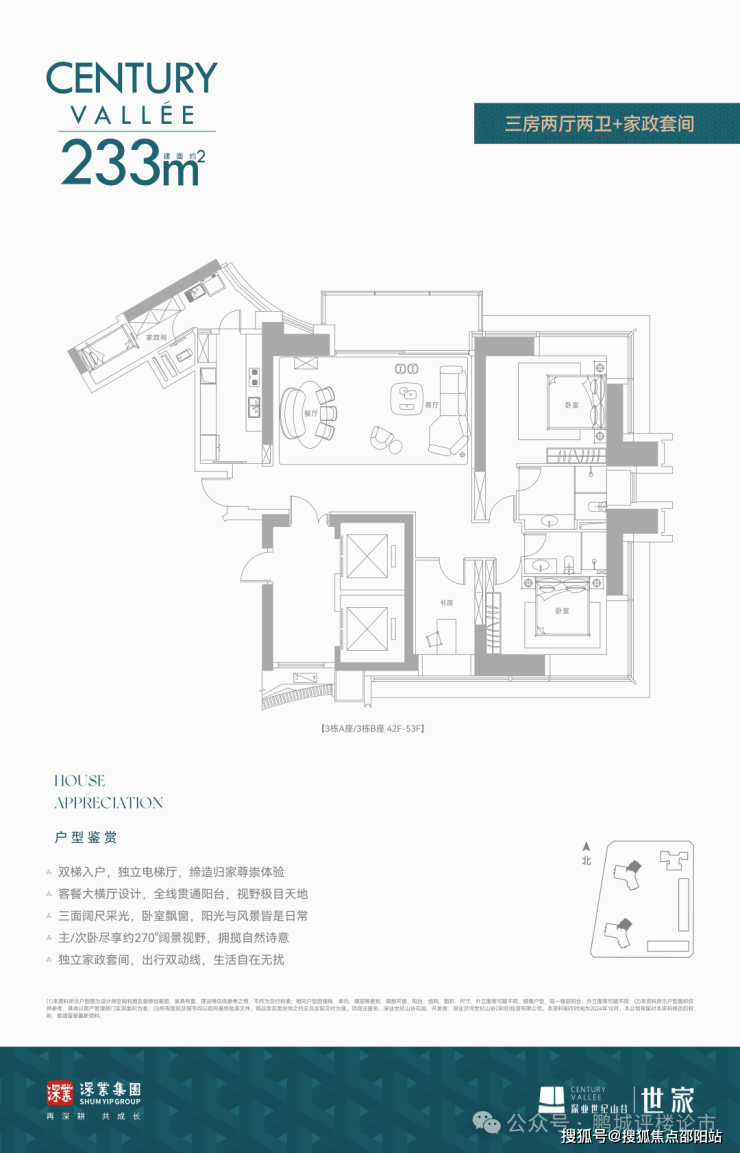 🔸开发商:深业沙河世纪山谷(深圳)投资有限公司🔸占地面积:约4.2万㎡🔸建筑面积:约39万㎡🔸世家大宅:约233/280/386㎡🔸云端复式:约420-1080㎡