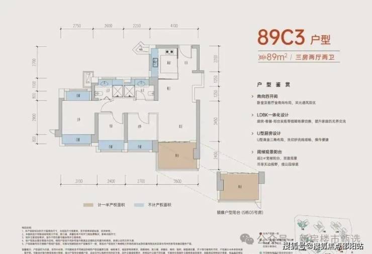 89C3户型 四开间朝南3房2卫