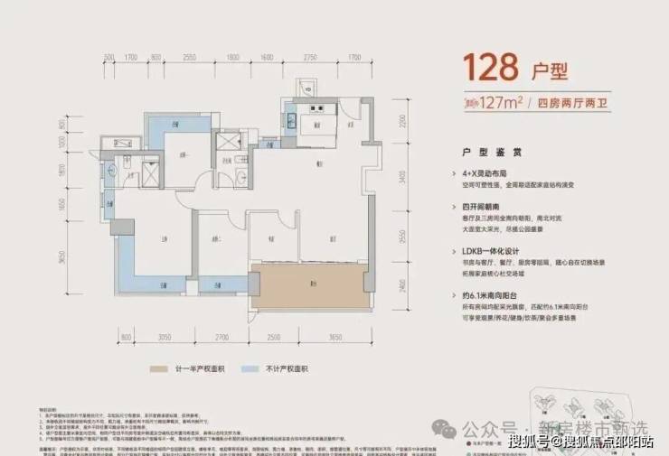 四开间南向采光,约6米开间阳台,客厅与次卧可拓展,双L型飘窗,多面采光通透舒适,开阔视野 、无遮挡、看公园景观