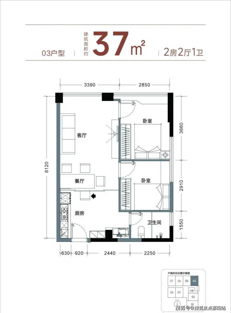 主力为37㎡两房,实际室内实用面积54-63㎡,实际使用率达145%-170%