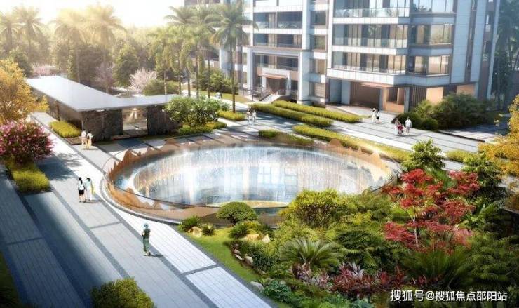 中心景观:下沉式中庭泳池,为园林赋予更立体的中心景观面