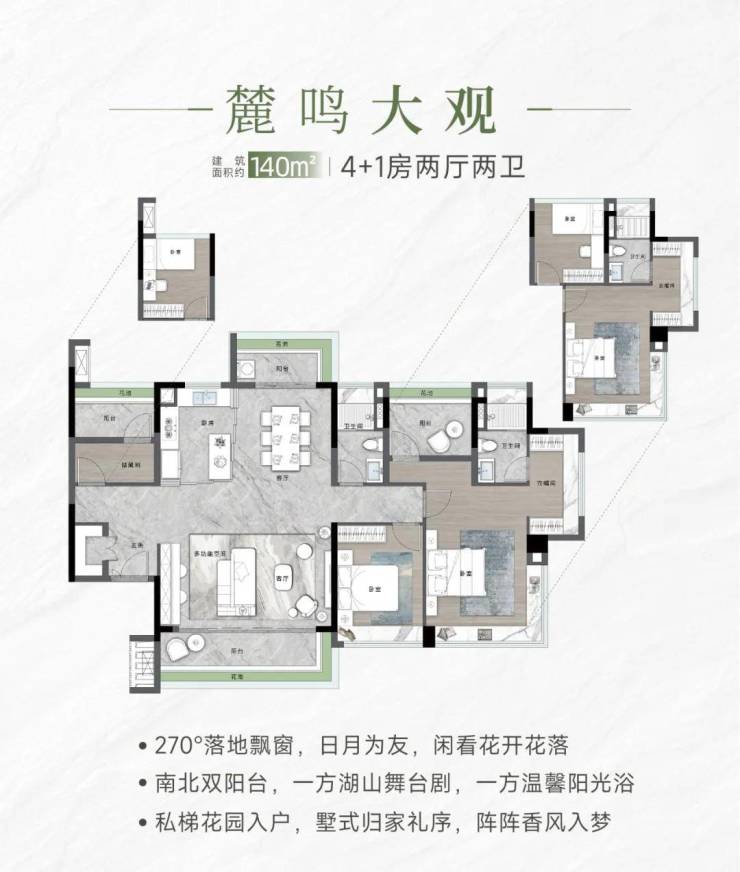 约5400㎡中央园林成为整个小区的“心脏”,为业主创造更多公共空间。更重要的是,规划了南北两条、东西一条通风廊道,既最大程度引入山景、湖景,又保证了空气对流,让负氧离子时时充盈每家每户。
