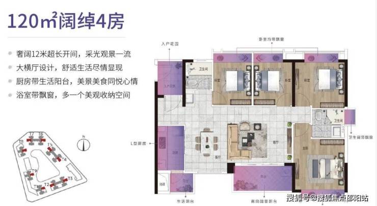 120㎡户型:超大横厅达12米,三代同堂改善型家庭首选。