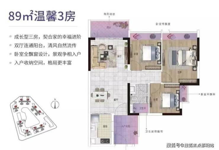 89㎡户型:三房布局,非常适合三口之家。
