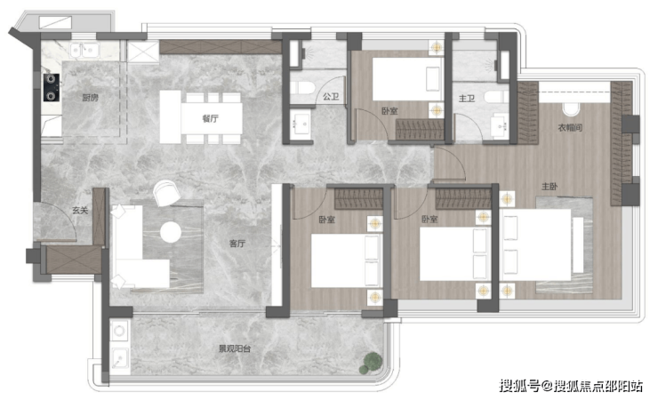 通透四开间朝南|一体化瞰江宽厅|270°全景女王主卧套房