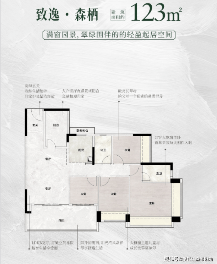 三期玖璋在售户型为95-135㎡,5空间,是家庭融合且相互独立的灵动居所。