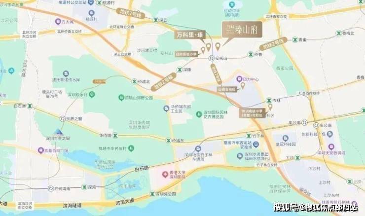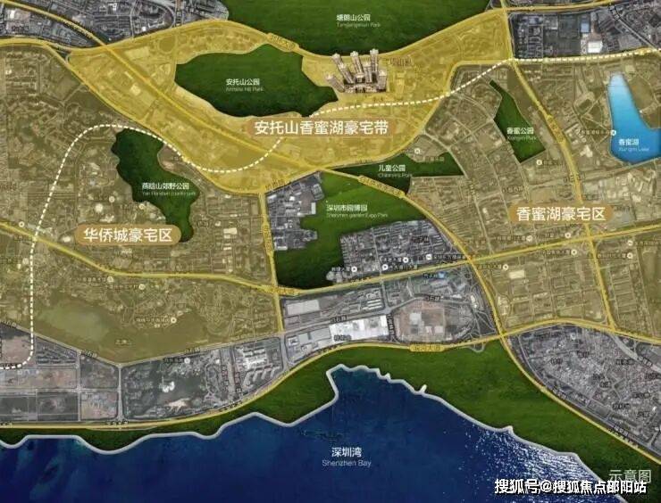 项目所在香蜜湖片区,周边倚靠安托山、塘朗山,与香蜜湖为邻,公园环簇安托山博物公园、梅林山公园、香蜜公园、园博园、儿童公园、燕晗山公园等。以两山一湖六公园的生态格局,拥揽城市绿肺。