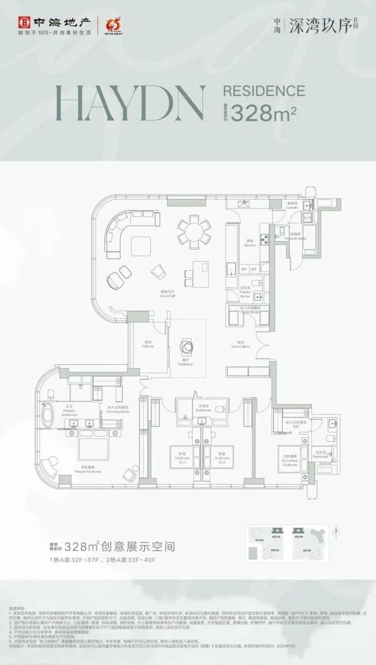 项目5栋可售住宅,共 515套,标准主力户型分别为:196㎡ 、252㎡、 328㎡,同时设有极少量400-600㎡传世顶复