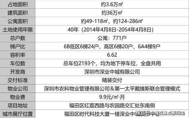 主要销售深业中城的商务公寓,6B栋以小户型为主,6A栋以大户型为主,部分户型也能看到香蜜公园景观。