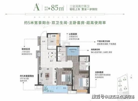 85㎡ 3房2厅2卫,南向3房带主套设计,生活更随心