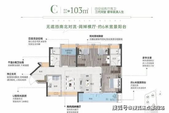 超6米宽MAX宽景阳台,南北通透一揽山林景色