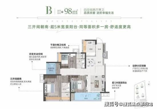 98㎡ 4房2厅2卫,超5米宽阳台