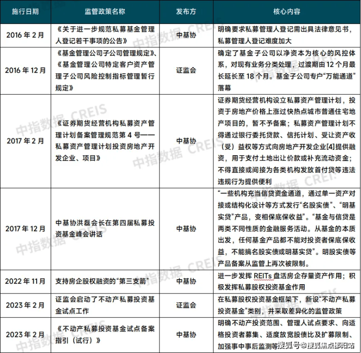 表:不动产私募投资基金、房地产基金政策对比资料来源:中指研究院整理