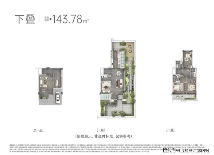 下叠143㎡户型,负一层贴心配备私人车库、健身区与影音室,满足您的日常休闲与娱乐需求。