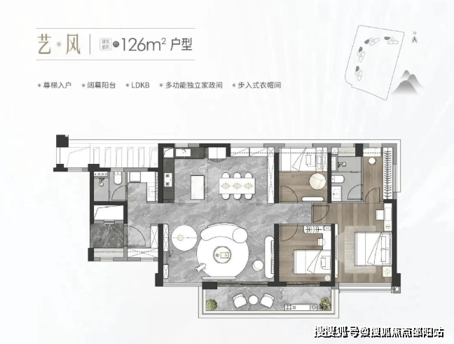 尊梯入户尽显尊贵。全南向四开间南北通透,空气流通顺畅,室内明亮舒适。两个主套空间为家庭成员提供独立私密休息空间。客厅、次卧与 8.5 米 L 型阔景阳台相连,最大化观赏白云山景,享受自然美景,适合对居住舒适度和景观有高要求的家庭。