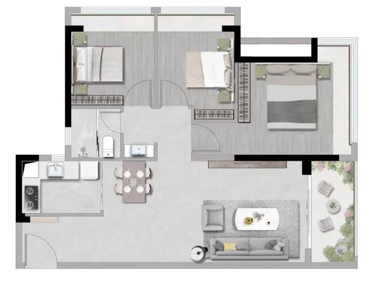 72㎡两房:优惠单价3.7-4.2万/㎡,优惠总价268-301万;