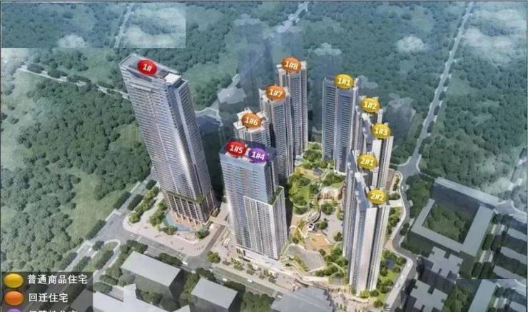 其中住宅20.3万㎡(含保障房1.5万㎡)、商务公寓3万㎡、商业5万㎡,以及配建有幼儿园和图书馆等市政生活配套。可售总套数约923套,为105㎡三房,125-144㎡四房,190-230㎡五房,260-280㎡六房,高区3梯3,低区3梯5户。套内建面小于90㎡的有736套,占比79.74%,以小户型为主。回迁面积为70-95㎡2-3房。