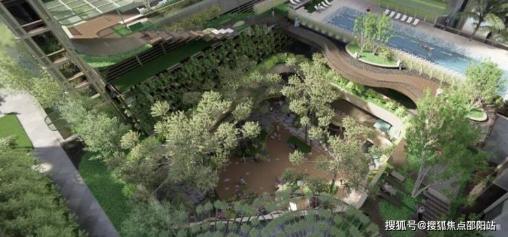 以垂直绿化和创意景观设计,为高层建筑下的空间带来一片生机勃勃的绿洲。