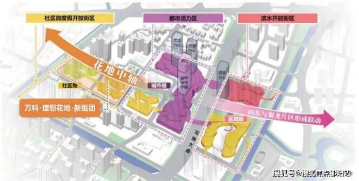 花地中轴,自西向东,串联起社区级微度假开放街区、城市级都市活力区、区域级滨水开放街区三大业态,重塑城市新格局。