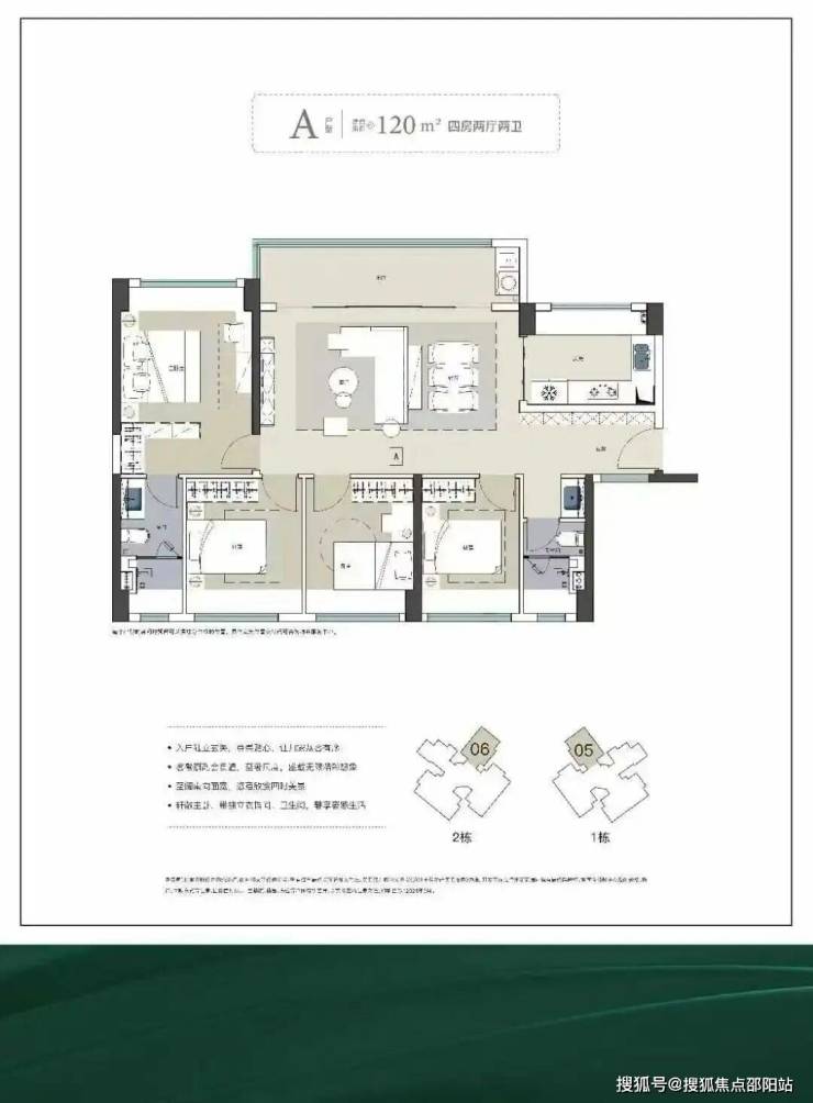 面积为75-120㎡三至四房,使用率超80%,高赠送,三开间朝南。