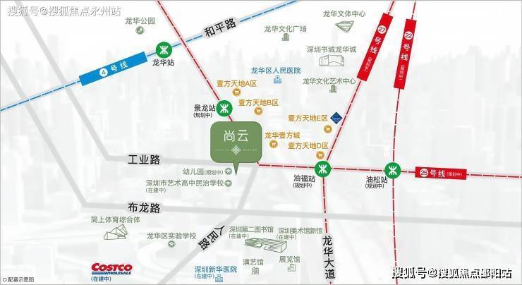 4号线(已开通):龙华站直线距离约1000m,深圳纵向城市交通中轴。