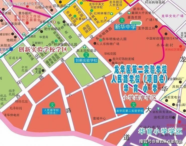 小学学区划分在龙华区第二实验学校小学部,人民路学校小学部,华育小学,作为小学共享学区,中学学区划分在人民路学校初中部,龙华区第二实验学校初中部,作为初中共享学区。
