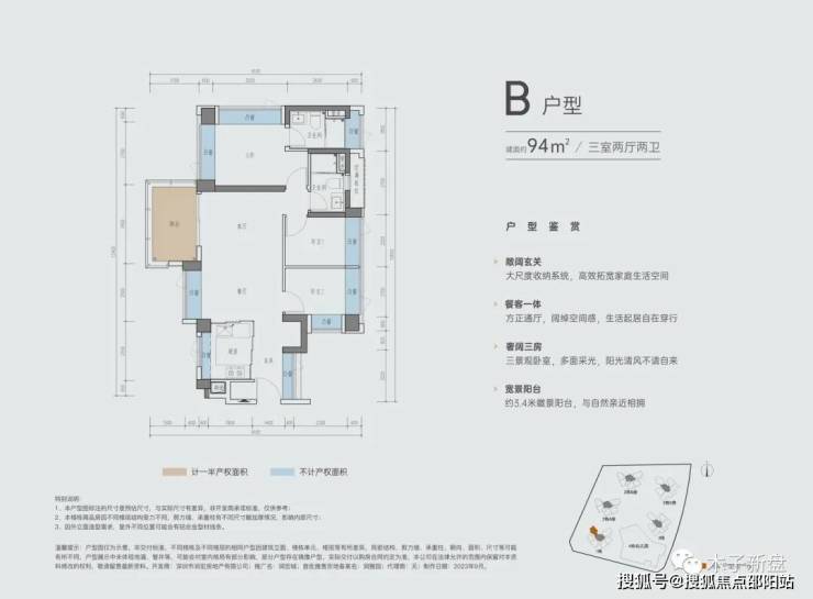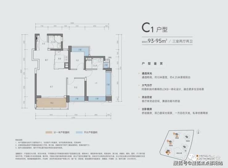 C-1户型 | 建面约93-95㎡三室两厅两卫