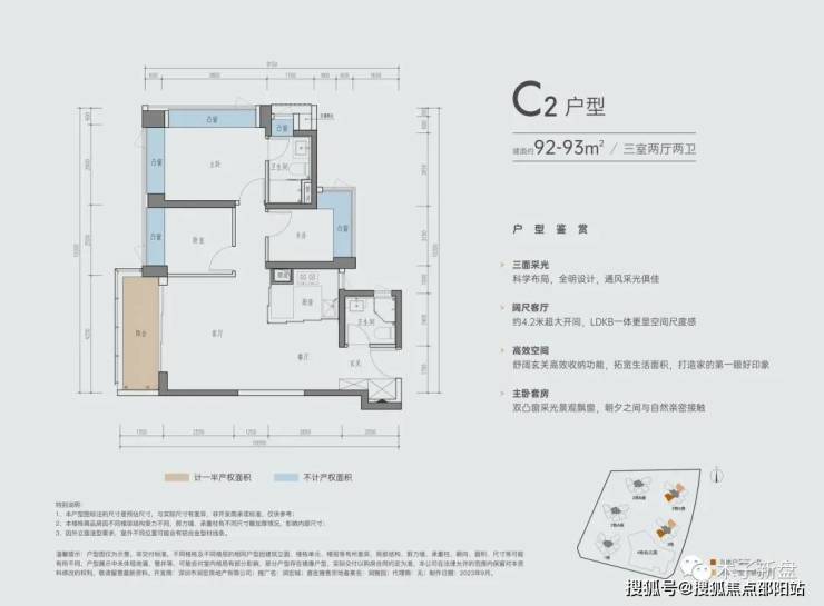C-2户型 | 建面约92-93㎡三室两厅两卫