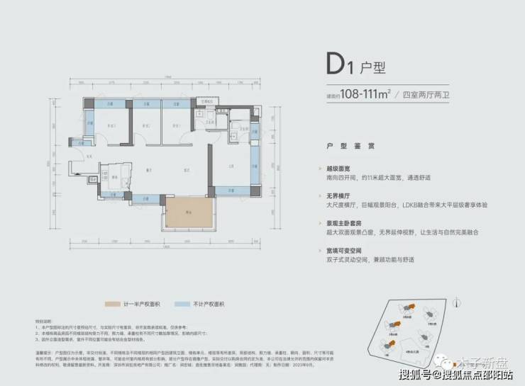 D-1户型 | 建面约108-111㎡四室两厅两卫