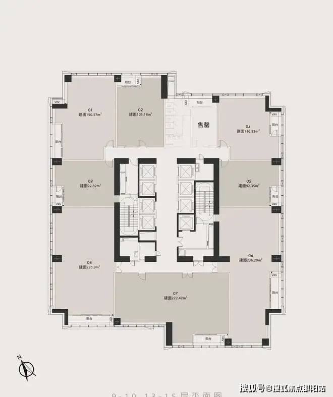 京基东滨时代产品主要为建筑面积约93㎡~235㎡云端公馆,所有户型均带阳台空间,室内无柱设计,搭配约4.5米层高,极致拉升着空间感;8梯9户的梯户比则让出行更加从容有度。