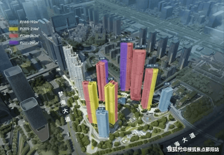 前海时代三期由深圳地铁集团有限公司开发,物业由深铁物业负责管理,占地面积约33.6万-33.7万㎡,总建筑面积约110万-130万㎡。项目涵盖住宅、商业、写字楼、酒店、公寓等多种业态,是前海规模最大、容积率最低(2.4-4.7)的综合体之一。