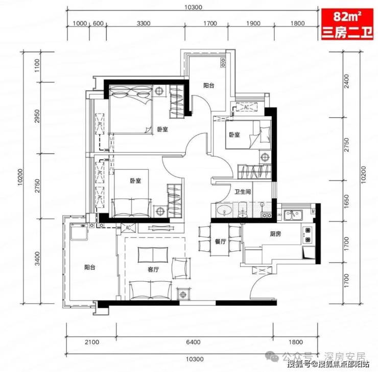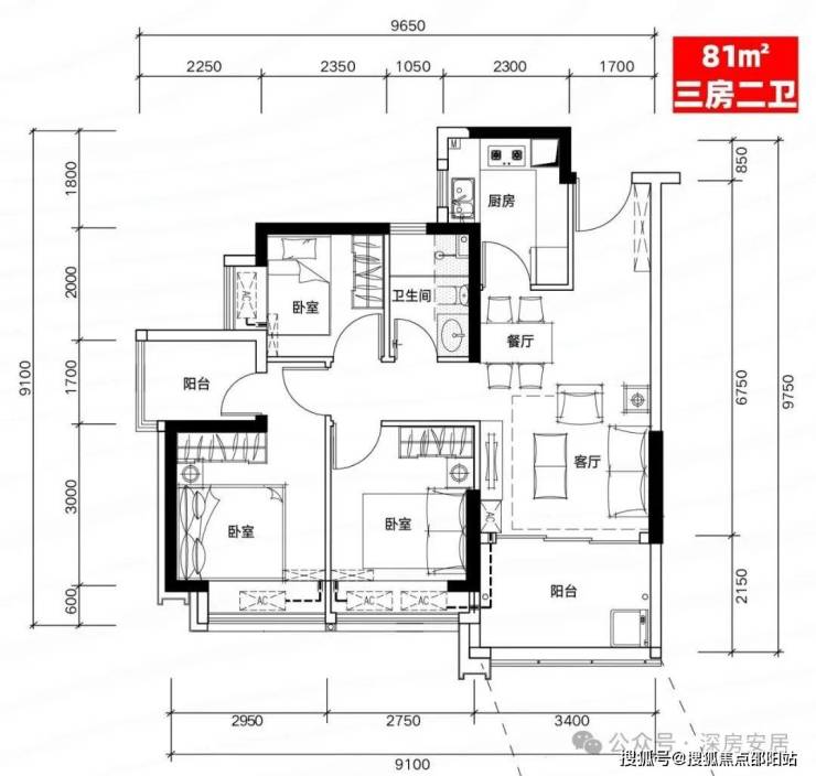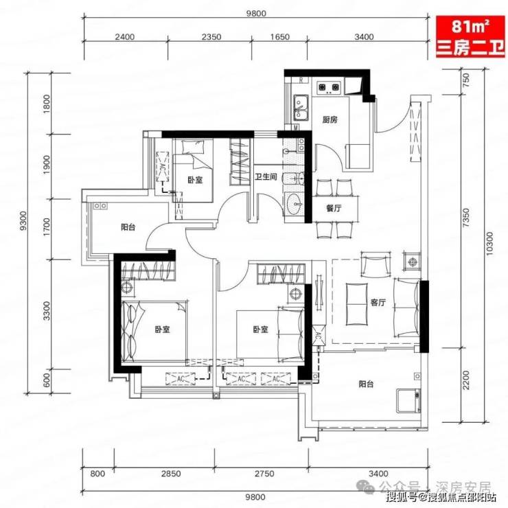 H03户型:81㎡三房二厅二卫