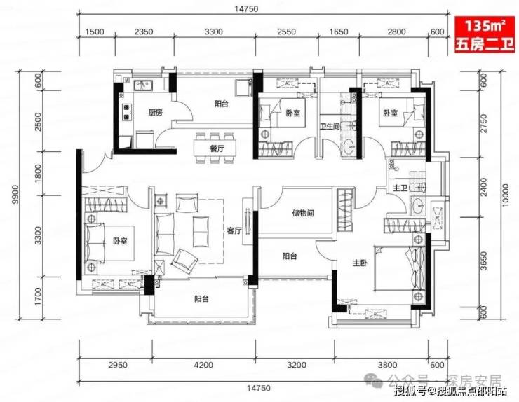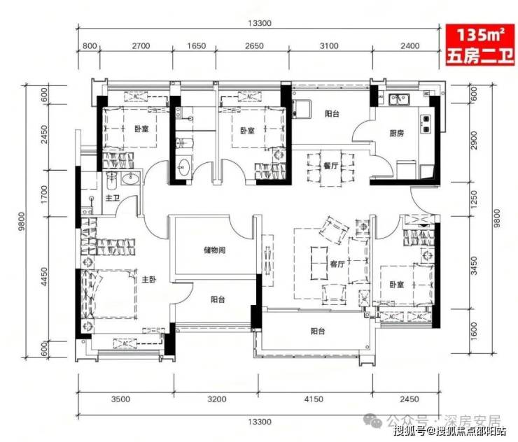 E户型:135㎡五房二厅二卫