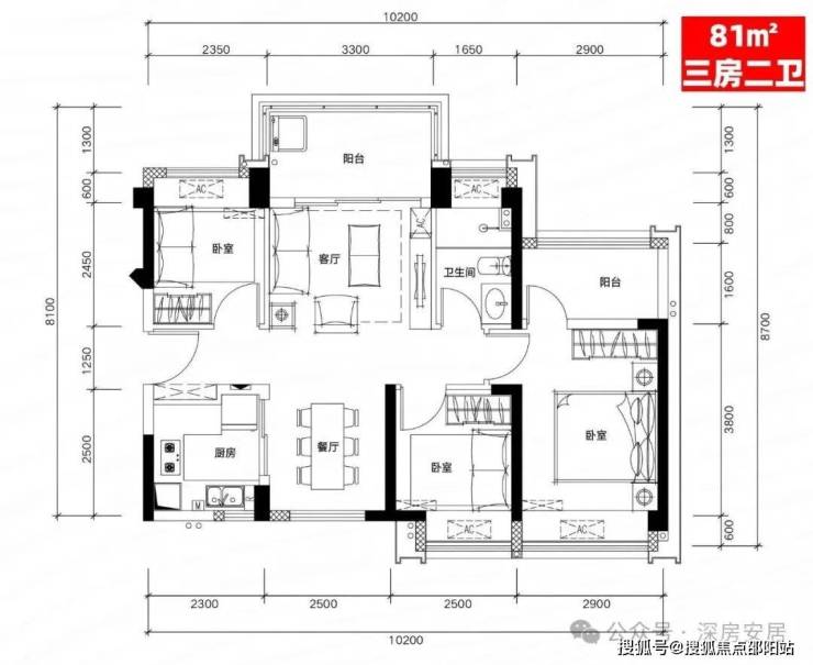H02户型:81㎡三房二厅二卫