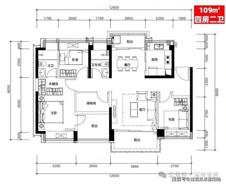 B03户型:109㎡四房二厅二卫