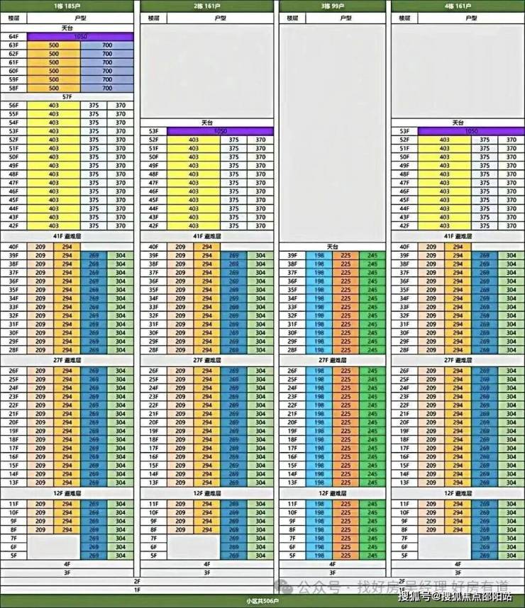 超高区(58层起,200米以上):约500-700㎡顶级大平层。