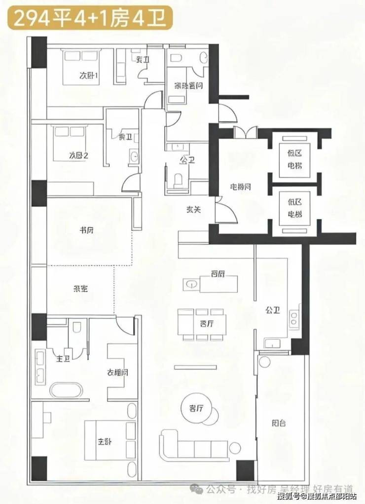 · 269-294㎡户型: 通常是四房以上大户型,注重家庭互动空间与个人私密空间的结合。
