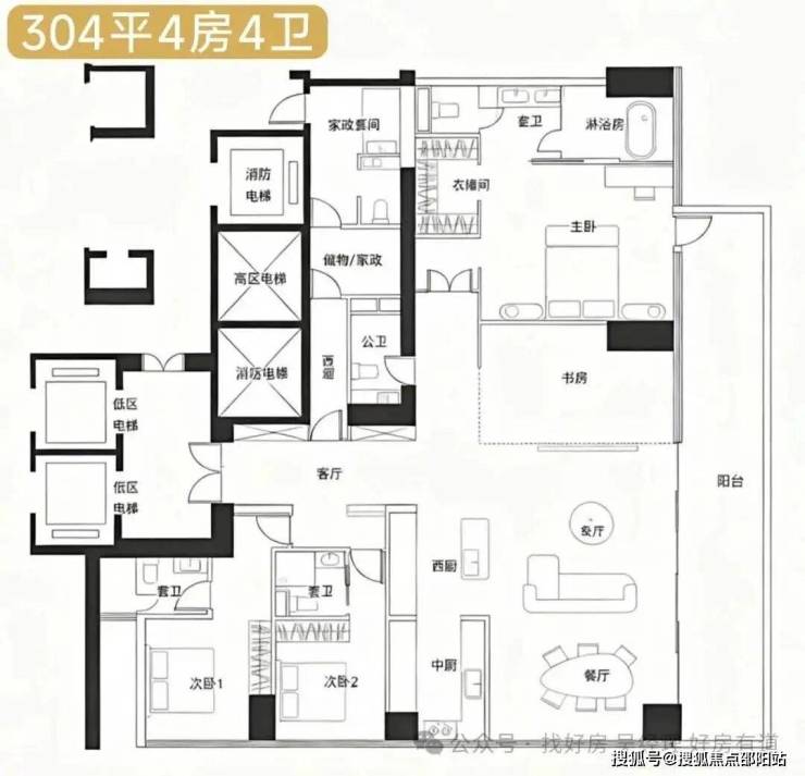 · 304㎡户型: 低区最大户型,空间布局奢华,功能分区明确,满足多代同堂的居住需求。