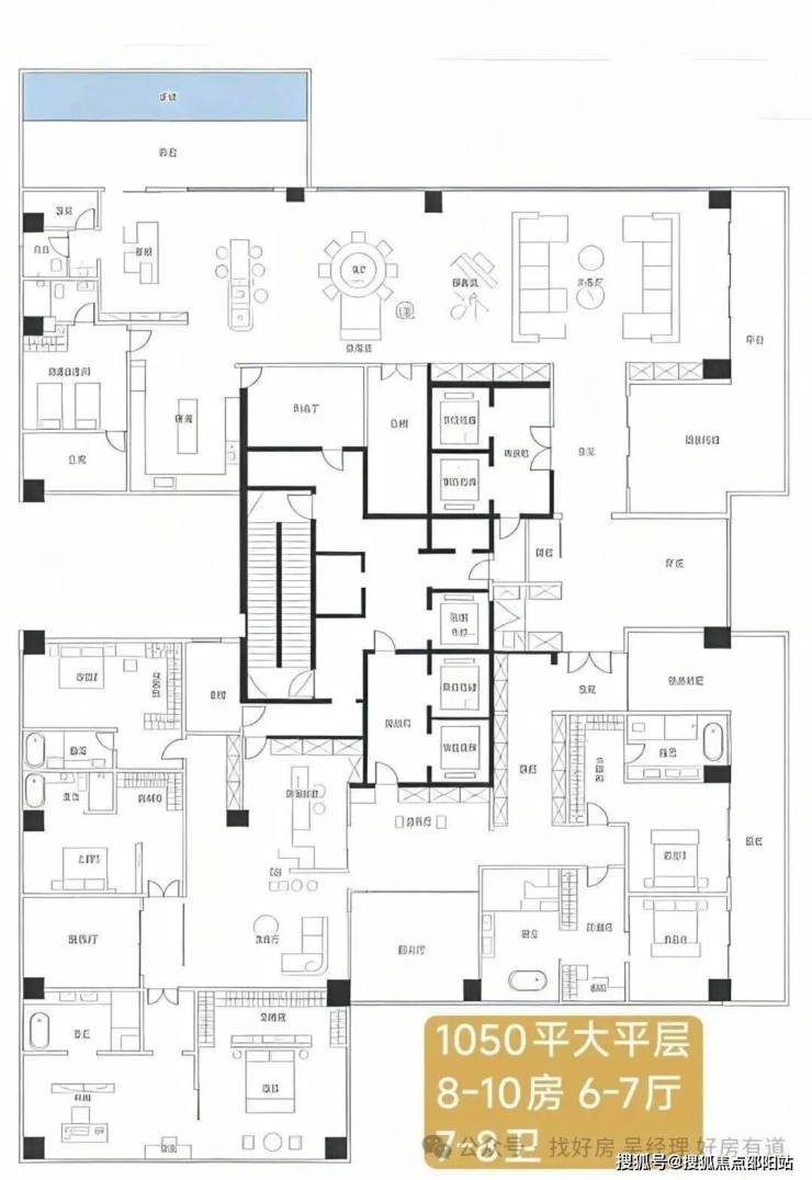顶楼:约1050㎡整层大平层(仅3套)。