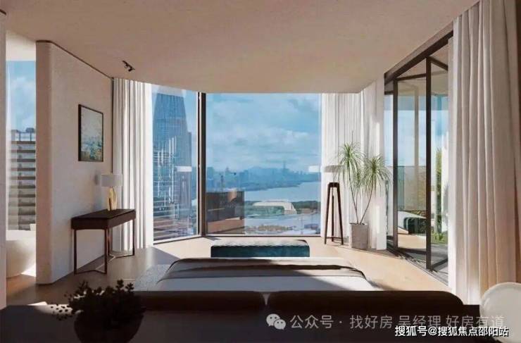 超高层观景面采用落地玻璃,深圳湾视野开阔,无需阳台即可观赏海景。