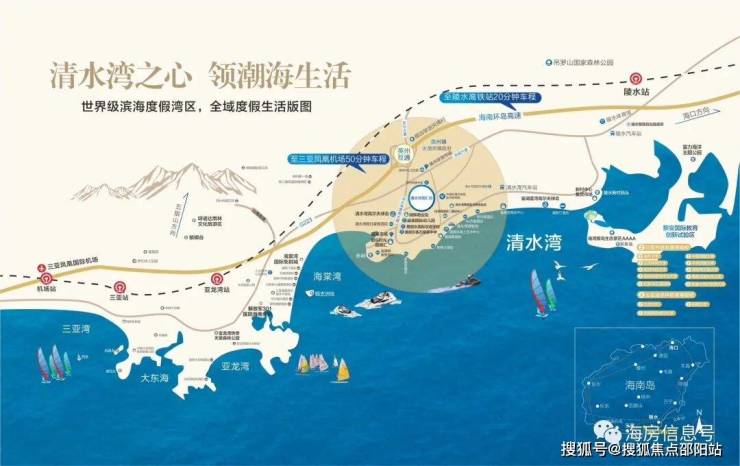 2⃣项目地处北纬18°以南,距三亚市区直线距离约45公里,尊踞大三亚醇熟生活圈;位于清水湾度假区中央核心,坐拥清水湾万亩文旅醇熟配套,紧邻陵水黎安国际教育创新试验区,致力于打造清水湾片区产品标杆。