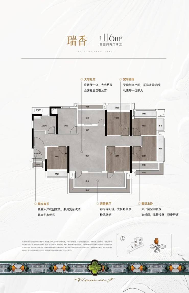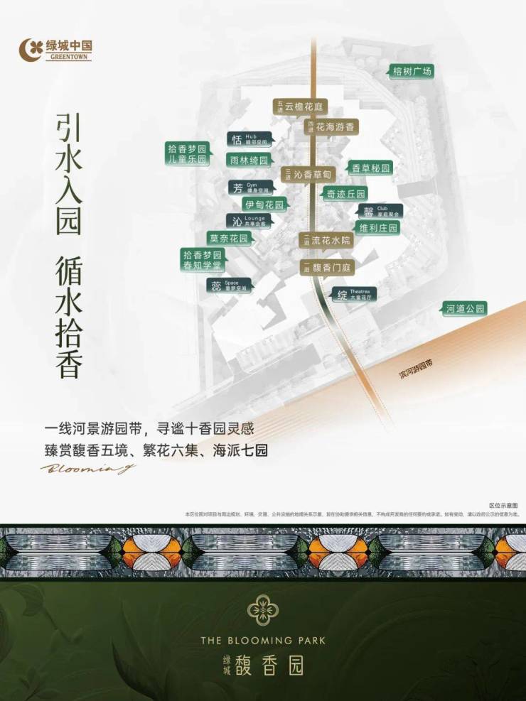 广州人向往花园生活,馥香园围合规划约1.2万㎡园林大境,融合岭南名园十香园灵感,引水入园,规划“一轴一带五境六集七园”,重拾馥郁花间的诗意悠然栖居。