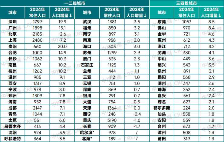 注:部分城市2024年常住人口数据尚未公布,采用2023-2021年均人口增量代替