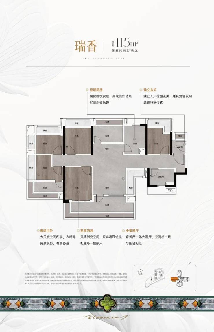 建面约115㎡户型、116㎡户型和127㎡户型布局类似,都能做到南北对流。